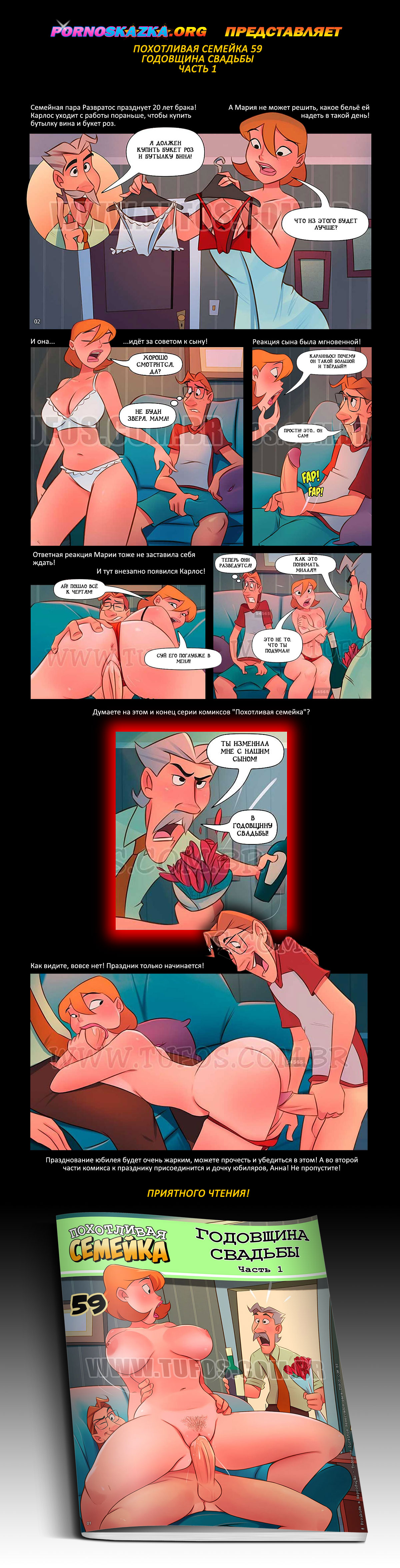 Порно комикс «Похотливая семейка 59: Годовщина свадьбы. Часть 1».